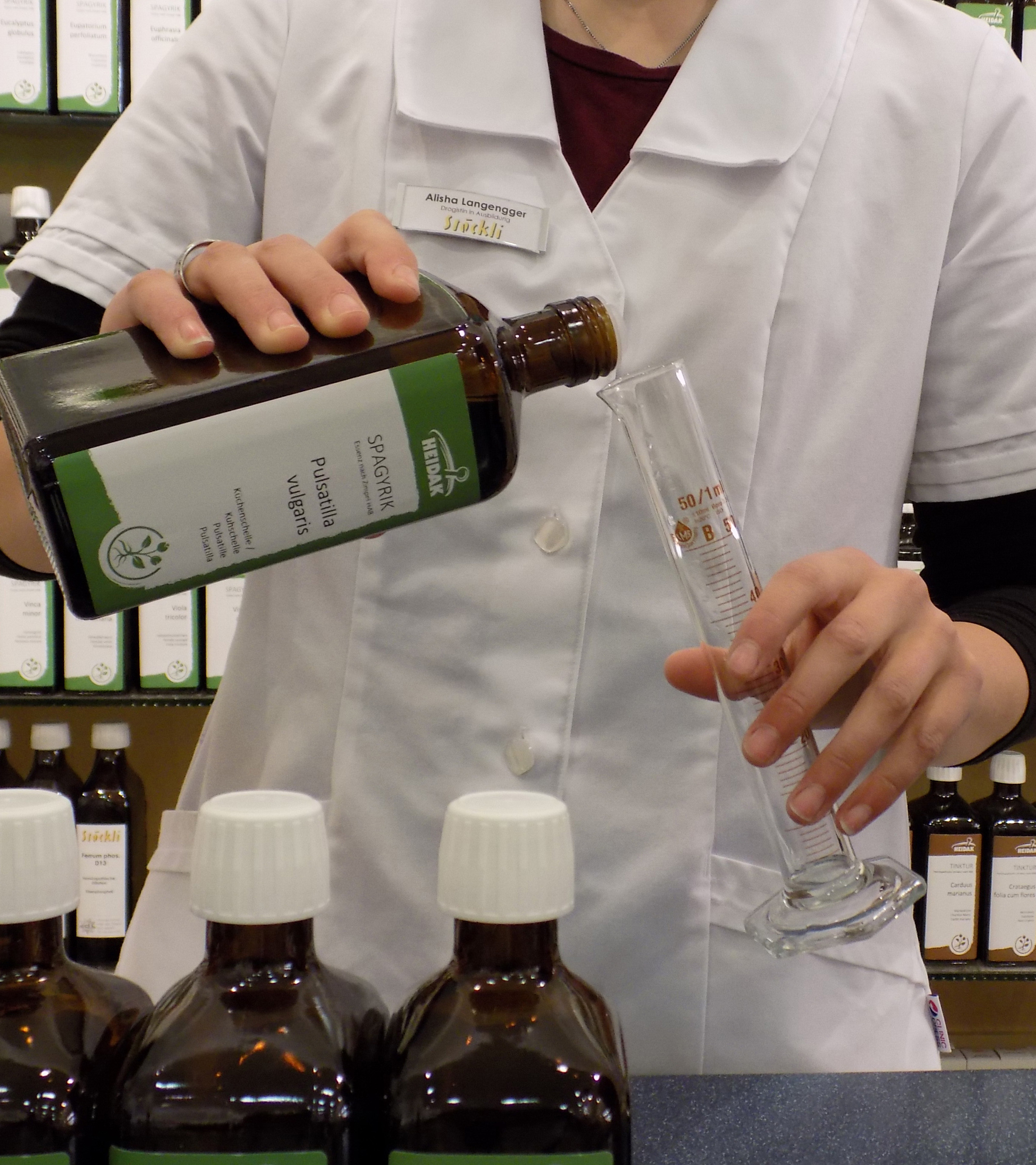 Zur Herstellung unserer Hausspezialitäten verwenden wir ausschliesslich Grundstoffe (Heilkräuter, Essenzen) bester Qualität.