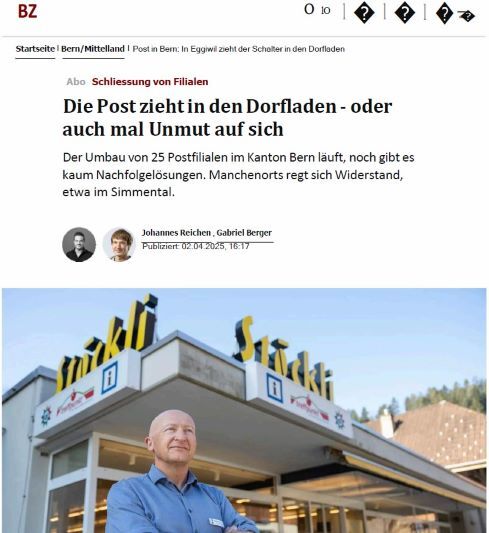 «Eggiwil, ganz zuhinterst im Emmental. Hier, wo das Durchschnittseinkommen im nationalen Schnitt zu den tiefsten gehört, führt Christian Stettler einen Dorladen. Mittlerweile in der zehnten Generation. Zu diesem gehören auch eine Bäckerei mit Café sowie eine Drogerie. Das «Stöckli Eggiwil» ist ein wichtiger Trefpunkt im Dorf... »